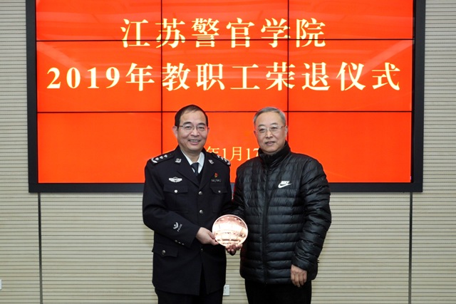1月17日下午,学院举行2019年教职工荣退仪式。学院党委副书记、院长张兰青出席并讲话。学院党委副书记封野主持仪式。与会领导向退休民警颁发了平安福盾,向退休教职工发放了工会纪念品。