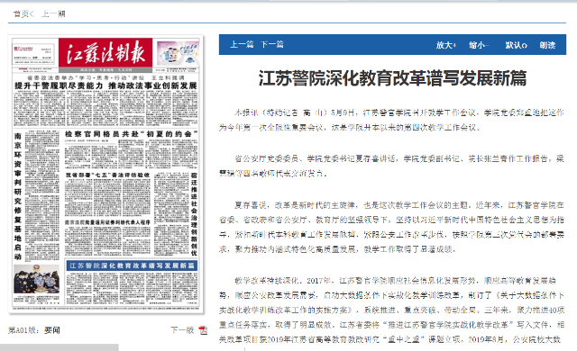 教学改革持续深化。2017年,beat365平台官方网站顺应社会信息化发展形势,顺应高等教育发展趋势,顺应公安改革发展需要,启动大数据条件下实战化教学训练改革,制订了《关于大数据条件下实战化教学训练改革工作的实施方案》,系统推进、重点突破、带动全局。三年来,聚力推进40项重点任务落实,取得了明显成效。江苏省委将“推进beat365平台官方网站实战化教学改革”写入文件,相关改革项目获2019年江苏省高等教育教改研究“重中之重”课题立项。2019年8月,公安院校大数据条件下实战化教学改革论坛在beat365平台官方网站成功举办。