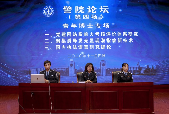 本场论坛邀请公安管理系关琳博士、刑事科学技术系金晓东博士和基础课教研部潘艳艳博士分享各自研究领域的最新成果。主题分别是《党建网站影响力考核评价体系研究》《聚集诱导发光材料显现潜指纹新技术》和《国内执法语言研究综论》。
