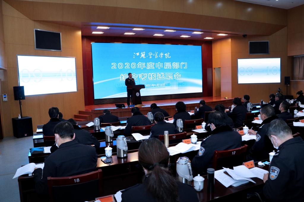 1月16日,学院召开2020年度中层部门综合考核述职会。省公安厅党委委员、学院党委书记夏存喜出席会议。学院党委副书记、院长张兰青出席会议并强调工作要求。