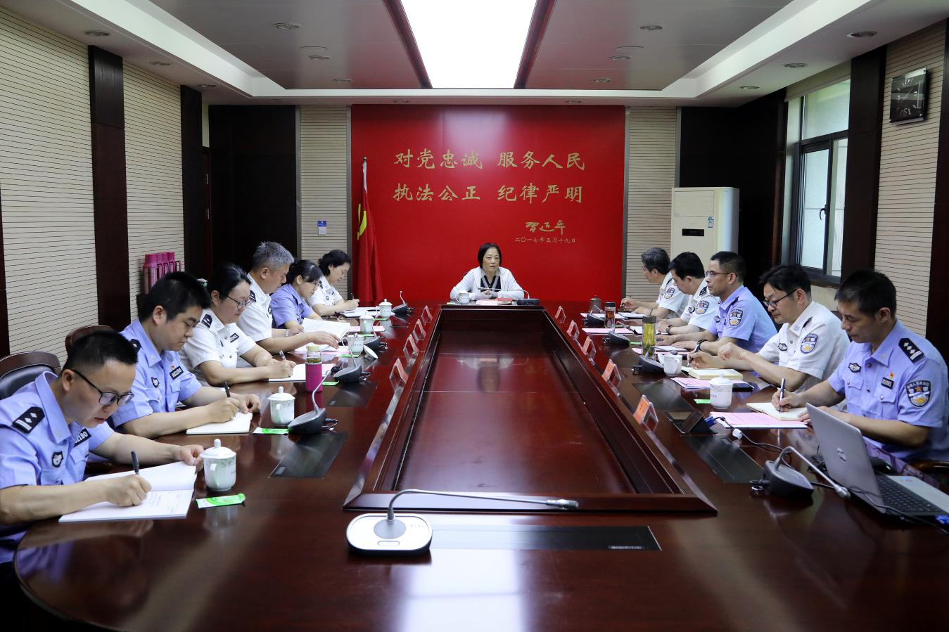 6月4日,省委教育工委党史学习教育第二巡回指导组以“四不两直”的方式,来学院督导检查党史学习教育工作。省委教育工委党史学习教育第二巡回指导组副组长、省教育厅二级巡视员眭平传达省委党史学习教育领导小组会议精神,听取学院党史学习教育工作情况汇报,到公安管理系党总支实地检查二级党组织党史学习教育情况,并查看了有关工作台账。省公安厅党委委员、学院党委书记夏存喜介绍了有关情况。学院党委副书记、党史学习教育领导小组副组长封野汇报了近期学院党史学习教育开展情况。
