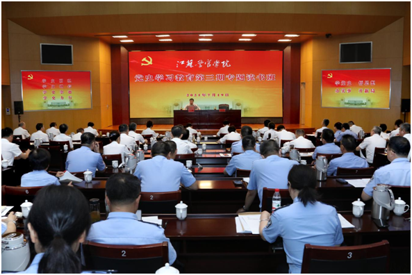 7月19日至20日,学院举办党史学习教育第三期专题读书班,认真学习贯彻习近平总书记“七一”重要讲话精神,深入学习党史学习教育指定书目,引导党员干部深学细悟、细照笃行,传承红色基因、践行初心使命,努力在新起点上创新推进学院内涵式特色化高质量发展。省公安厅党委委员、学院党委书记夏存喜,学院党委副书记、院长张兰青和院党委成员,二级巡视员,中层部门负责人100多人参加专题读书班学习。