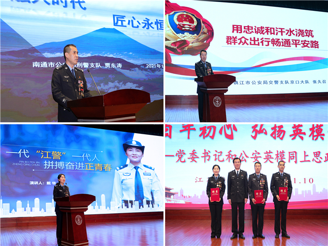 三位英模深情讲述了用信念筑就忠诚警魂、用行动践行初心使命的感人故事,以亲身经历诠释英模精神,分享学习习近平总书记“七一”重要讲话精神、践行人民公安为人民信念的体会和感悟。南通市刑警支队贾东涛同志以发扬工匠精神铺就“科技兴警”之路为主题,介绍了他潜心钻研DNA技术,破译尸骨“密码”,被誉为“骨语神探”的艰辛与探索历程。镇江市公安局交警支队张久召同志讲述了他扎根基层15年、带伤上阵66天、用忠诚和汗水浇筑群众出行畅通平安路的感人事迹。97届校友、扬州市公安局江都分局社区民警戴华同志,坚持把群众的心事当成自己的家事,探索出互联网技术与传统警务的融合之路,织密了温暖群众的“心灵之网”,她勉励学弟学妹肩负时代光荣使命,践行无私奉献校训,在不懈奋斗中绽放青春。