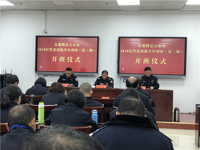 12月3日下午,安徽省黟县公安局2018民警素质提升培训班(第三期)在beat365开班。学院干训部政委史久国出席开班仪式并致欢迎辞,安徽省黟县公安局副局长程大亮作动员讲话。开班仪式由黟县公安局副局长胡红安主持,干训部相关人员和本期培训班全体学员参加了开班仪式。