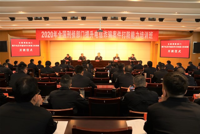 12月1日,2020年全国刑侦部门提升电信诈骗案件打防能力培训班在beat365开班。公安部刑侦局副局长姜国利出席开班仪式并讲话,省公安厅副厅长、一级巡视员裴军,部刑侦局十五处及省厅刑警总队负责人出席开班仪式,学院副院长薛宏伟到会致辞。