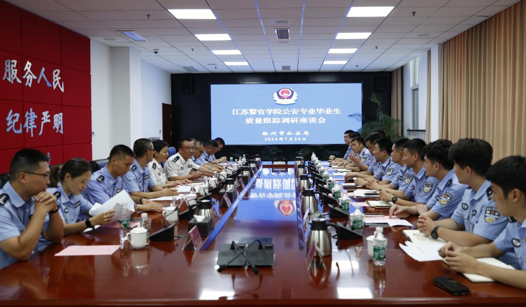 为进一步加强学院人才培养质量监测,探索校局协同育人创新举措,7月24日至26日,学院党委副书记陈卫带领由警体部、教务处和学生处有关同志组成的调研组,赴徐州市公安局开展公安专业毕业生质量跟踪专题调研和警务指挥与战术专业工作调研,期间与市局相关负责同志就构建校局信息反馈平台、丰富校局培训体系、拓宽校局合作领域、创新协同育人机制等进行交流探讨。徐州市副市长、公安局局长杨健,公安局党委副书记、常务副局长李海波,公安局党委委员、政治部主任黄玉柱等领导及相关部门负责同志参加调研交流。