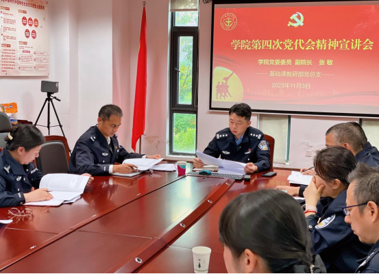 2023年11月3日下午,学院党委委员、副院长张敏到基础课教研部宣讲院第四次党代会精神,就如何贯彻落实党代会精神提出要求。
