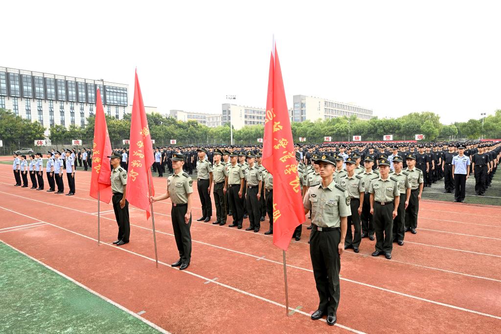 8月30日上午,学院在浦口校区田径场举行2023级公安专业新生军训开训动员大会。学院一级巡视员殷竹钧为新生军训大队授旗并讲话。