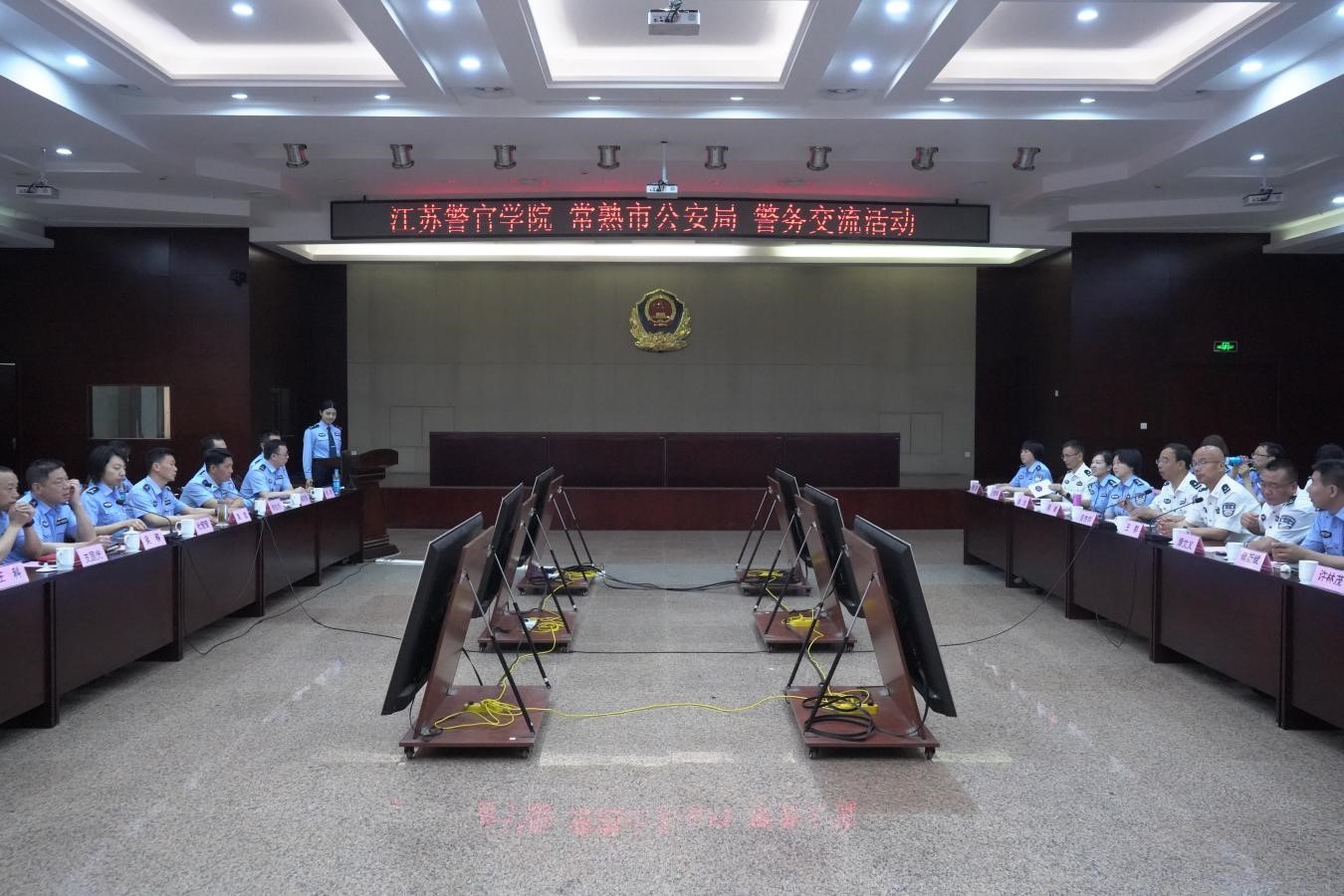研究生导师观看了常熟公安宣传片,参观了常熟市公安局队伍管理中心、基础管控中心、执法办案中心,考察了常熟市公安局巡特警大队、战训大队、东南派出所,了解了常熟市公安局围绕基础管控、融合侦查、执法服务、队伍管理等方面积累的经验、取得的成绩,感受了基层公安机关落实“市县主战、派出所主防”机制改革要求所进行的创新实践。期间,双方还就执法规范化建设、警务资源统筹、信息化技术运用和警务硕士培养模式、省级研究生工作站创建等工作开展了座谈交流。