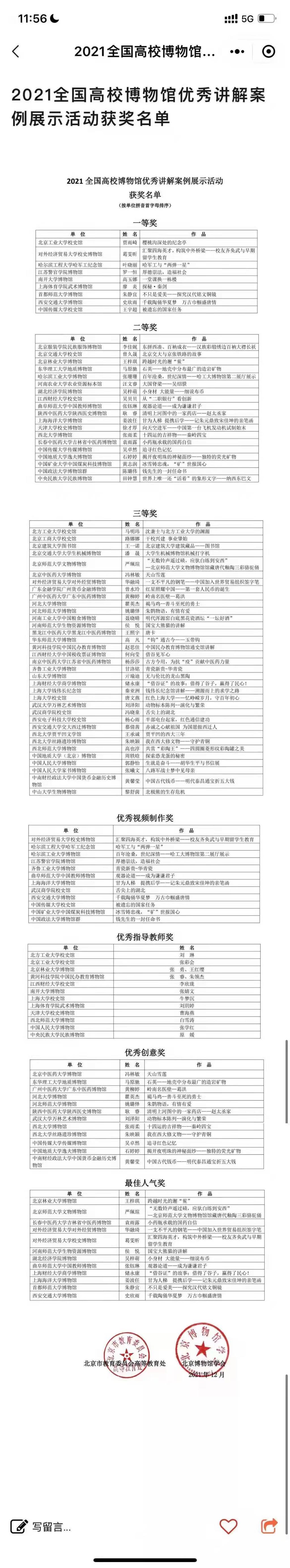 2021年12月17日,第七届全国高校博物馆馆长论坛暨2021年全国高校博物馆优秀讲解案例展示活动在北京举行。beat365博物馆选送的案例“厚德崇法,造福社会”在众多参赛作品中脱颖而出,一举斩获“一等奖”和“优秀视频制作奖”两个奖项。