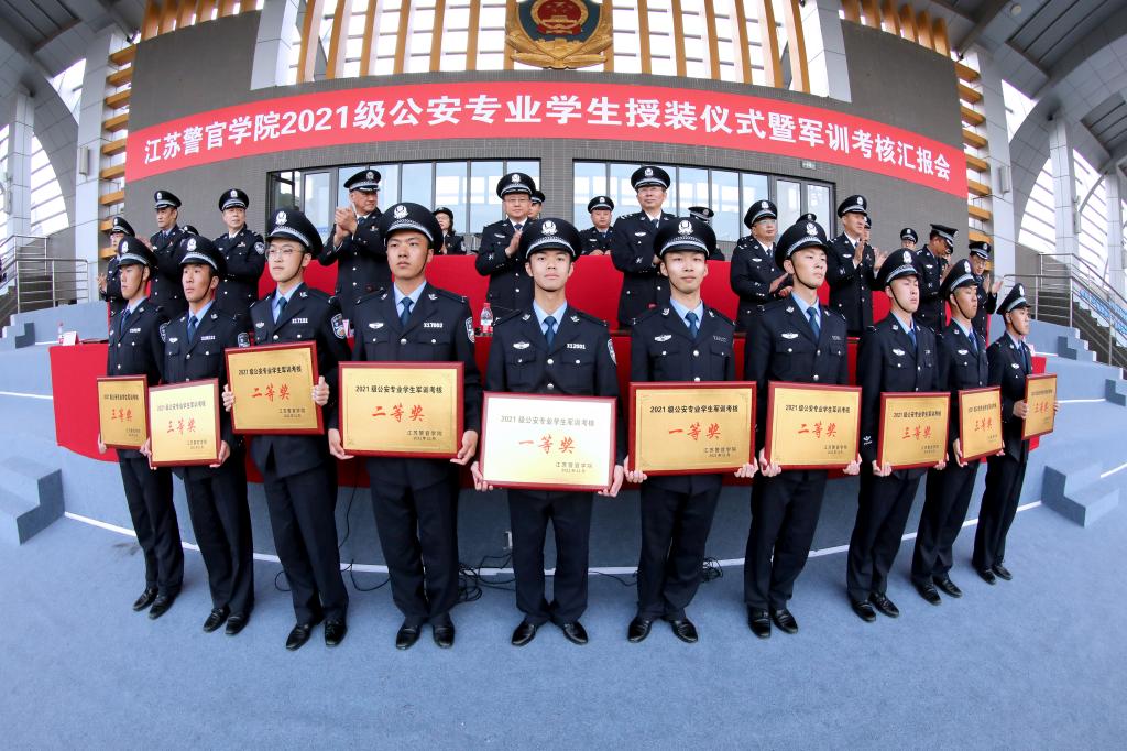 升旗仪式结束后,举行授装仪式,参会领导为各区队颁发授装证书,全体新生进行接装宣誓。随即进行军训考核,25个方阵依次通过主席台,他们步伐整齐、口号响亮、士气高昂、朝气蓬勃,充分展现了军训的良好成果,赢得现场师生阵阵掌声。经过激烈的比拼,评委现场打分,评选出2021级警务指挥与战术1区队等10个优秀区队、刘晨晨等10名最美教员。