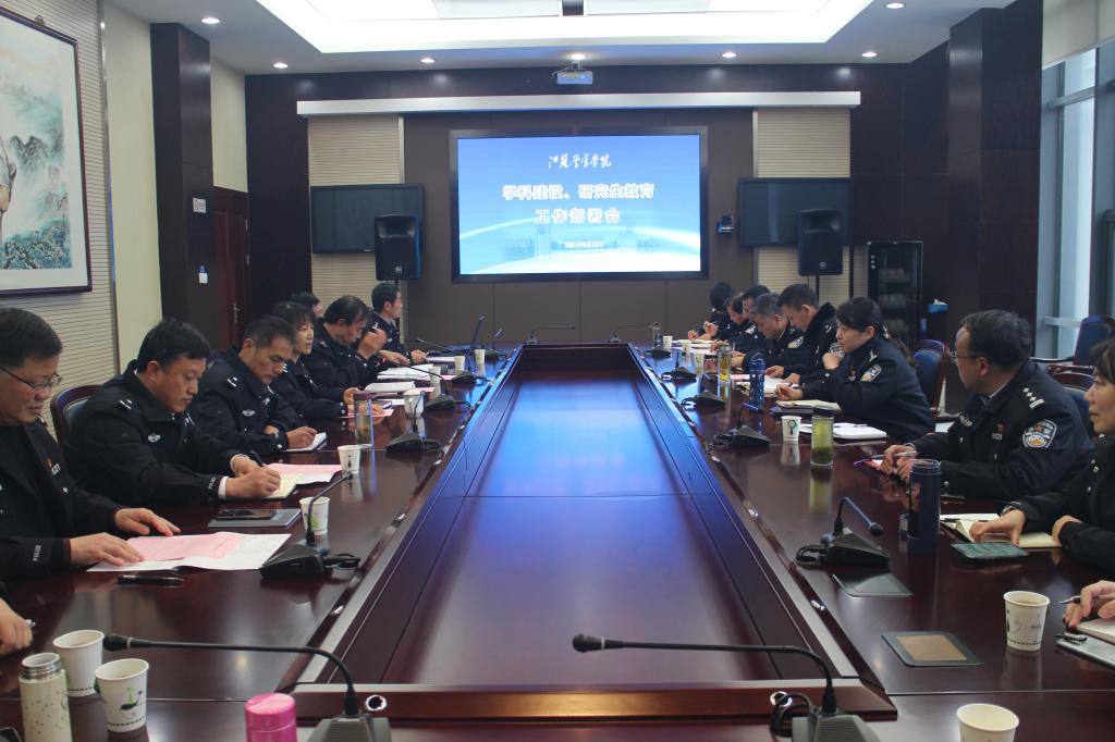 各系部分管学科建设和研究生工作负责人,省级、院级学科负责人,联办研究生警务课程组组长,科研处、教务处、人事处等部门负责人,学科部、研究生部全体人员参加会议。