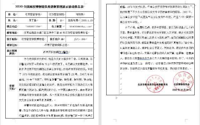 11月27日,第六届中国高校博物馆馆长论坛暨2020年全国高校博物馆优秀讲解案例展示颁奖仪式在中国传媒大学召开。学院博物馆志愿者团2018级警务指挥与战术专业黄丁香荣获2020年全国高校博物馆优秀讲解案例展示二等奖,学院博物馆荣获2020年全国高校博物馆优秀讲解案例展示最佳组织奖。