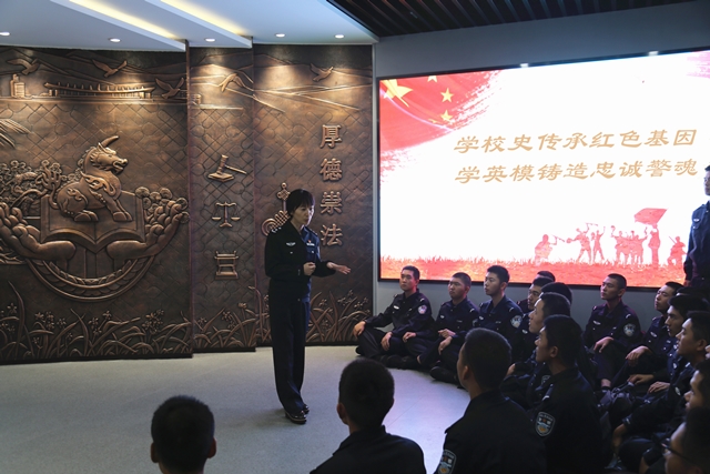 近日,学院博物馆和学生处联合开展“学校史传承红色基因,学英模铸造忠诚警魂”主题教育活动。2020级公安专业1200余名新生,分批走进校史馆传承红色基因,接受校史教育。学院副院长黄进为同学们主讲校史第一课。