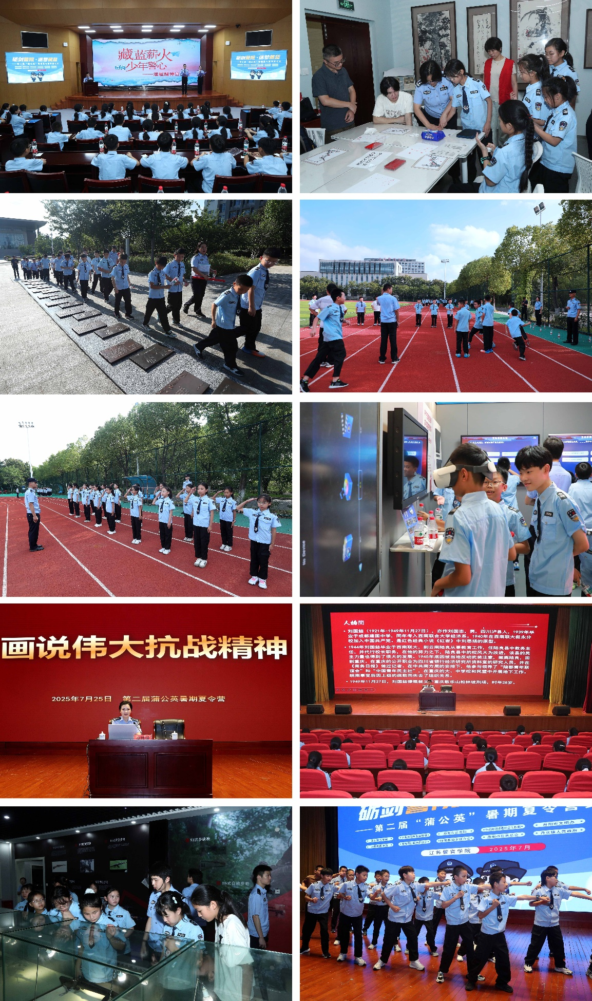 本次夏令营活动丰富、内容多元。开营仪式上,全国公安系统二级英雄模范、丹阳市公安局后巷派出所所长、蒲公英协会副会长张叶宏带领夏令营成员进行入营宣誓。81位小营员在公安英模、警院教师和志愿者的陪伴下,参观《破晓——城市接管中的人民公安》展览,聆听“画说抗战精神”艺术思政课和《红岩魂》红色文化宣讲,在中国人民抗日战争暨世界反法西斯战争胜利80周年这个特殊时刻,回首烽火硝烟中的那段峥嵘岁月,感悟革命先烈的英勇事迹和不朽精神,更加珍惜来之不易的和平;聆听“沐光而行”宣讲团“藏蓝薪火 少年警心”公安英模主题宣讲,参观功模校友事迹展,从公安英模惊心动魄、荡气回肠的英雄故事中感受坚不可摧的忠诚信念;走进指纹博物馆,在微观世界里,探寻科技守护平安中国的神奇密码;徜徉近代警察史博物馆、枪械发展史陈列馆,感受人民公安事业发展的历史积淀与时代脉动;在安防体验中心,沉浸式学习守护自身安全的智慧;参加早操、警体训练、团队活动,体验警务化管理的严格要求,深入感悟人民警察“维护国家安全和社会稳定、守护人民的幸福和安宁”的神圣职责。