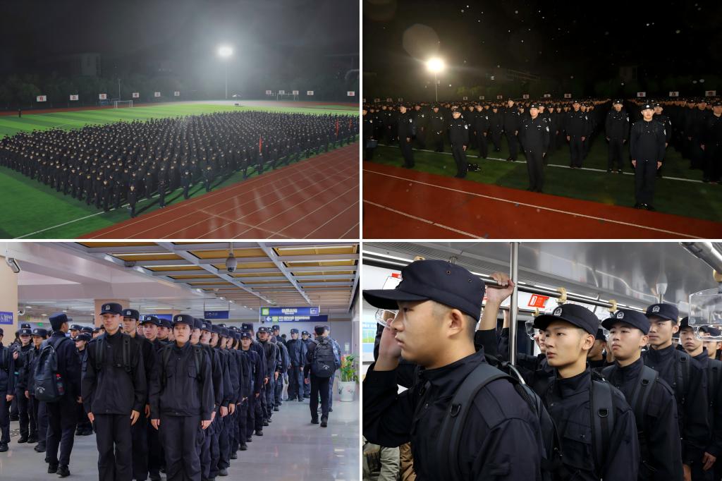 凌晨5:20,全体本科新生在集结号中整体列队。微雨淅淅,秋风习习。浦口校区警训场上,1200多名新生精神抖擞、整装待发;安德门校区600多名新生同步集结,乘坐第一班地铁赶往南京青奥体育公园站与浦口校区队伍汇合。
