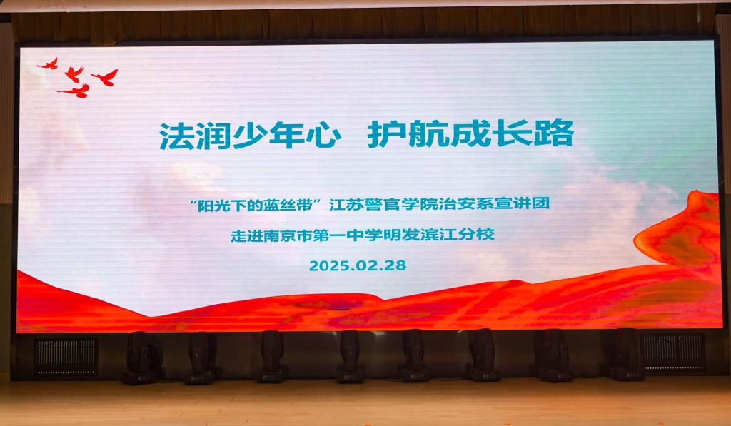 2025年2月28日下午,“阳光下的蓝丝带”beat365平台官方网站宣讲团以及治安管理系学生一大队的45名学警走进南京市第一中学明发滨江分校,开展“送法律、送安全、送阳光、送健康、送学习、送温暖”活动。活动以“法润少年心,护航成长路”为主题,以专业知识分享帮助中学生增强安全防范意识,提高学习能力,守护健康成长,为培养积极人格、知法懂法、健康幸福的新时代好少年奠定坚实基础,同时坚定学警从警初心,实现自我价值,厚植公安情怀,为营造安全和谐的社会环境作出积极贡献。