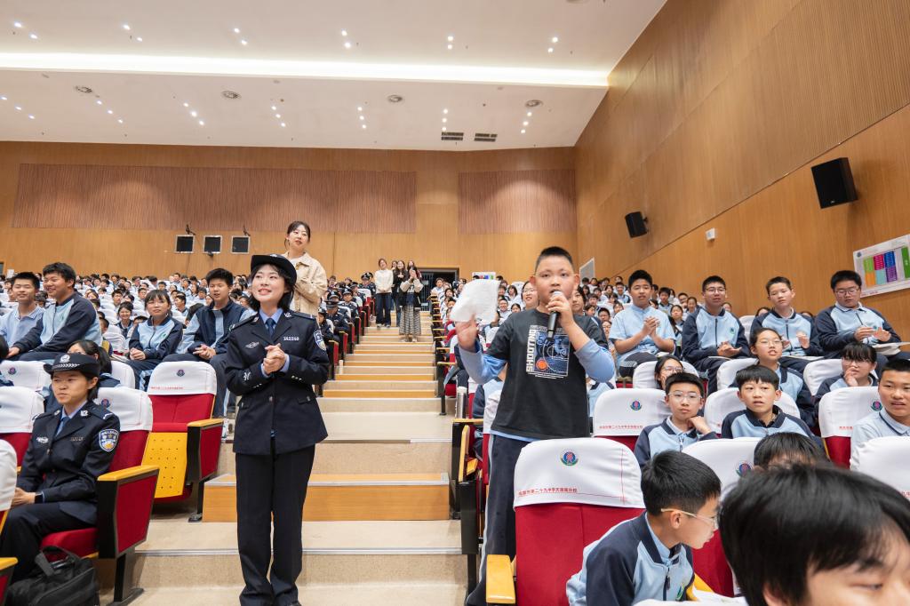 在互动答疑环节,同学们积极踊跃,就自己关心的法律知识、安全防范、学习生活等问题提问,宣讲团成员耐心解答,与大家深入交流,分享大学生活,传递新时代警校生的正能量,现场气氛十分活跃。