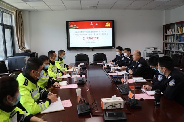 4月30日上午,学院治安管理系教师第二党支部与南京市公安局浦口分局交警大队党总支在学院浦口校区举行合作共建签约仪式。根据协议,双方将通过不定期开展党建交流活动,推动合作进行专业实践性教学,开展相关专业课题、项目研究,鼓励专业教师参与疑难交通执法案件研判、重大交通事故预防与处理研讨、智能道路交通控制研发等。