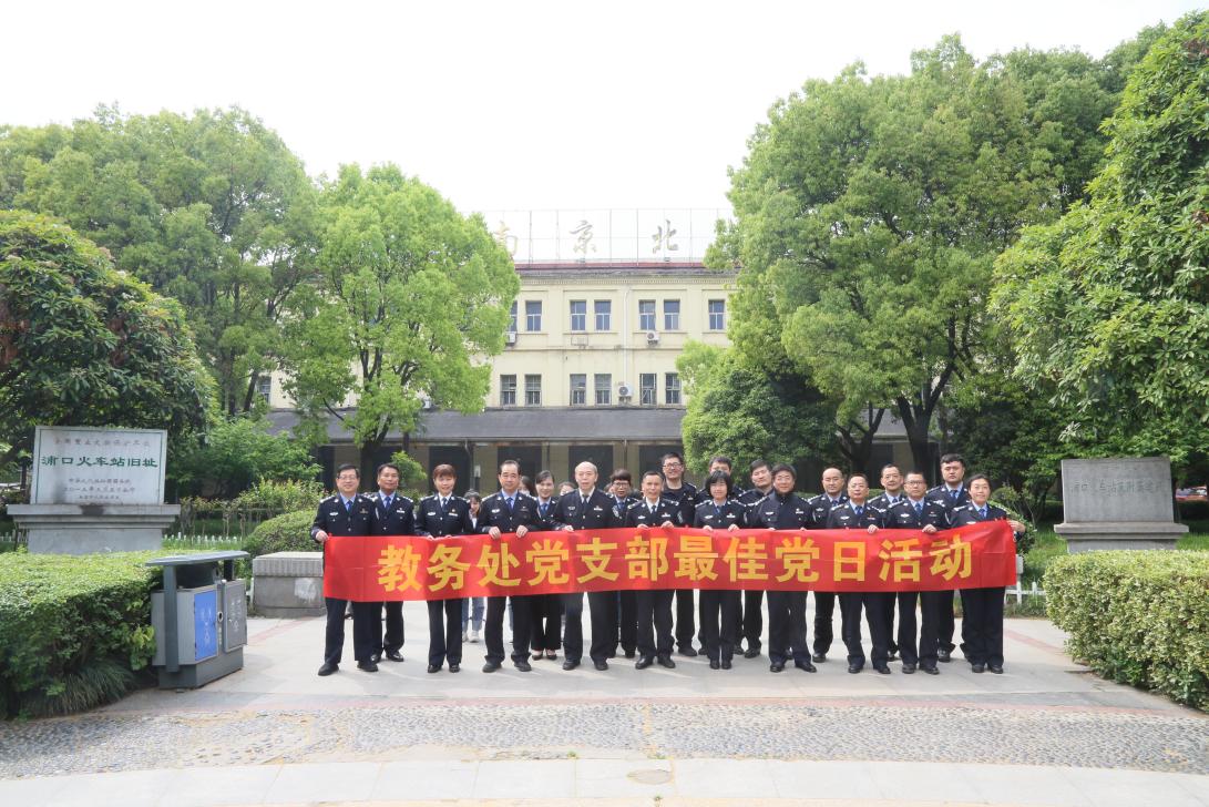 为了深入开展支部学习四史活动,坚定支部全体党员理想信念,不断提升党性修养,锤炼工作能力,丰富学习活动形式载体,在南京解放纪念日,教务处支部组织开展“学四史、悟思想,守初心、铸警魂”主题党日活动,旨在通过参观实践、重温誓词、主题党课等让支部全体党员深刻认识的红色政权来之不易,新中国来之不易,中国特色社会主义来之不易,深刻认识到我党先进的政治属性、崇高的政治理想、高尚政治追求、纯洁的政治品质。