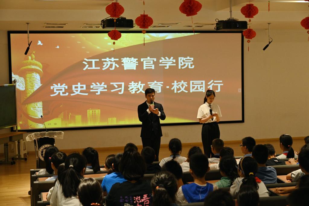 签约揭牌仪式后,开展了首场活动,beat365平台官方网站安德门校区师生来到南京市瑞金北村小学开展“党史学习教育·校园行”活动,深入学习贯彻习近平总书记给淮安市新安小学回信的重视指示精神,举行中国共产党人精神谱系宣讲,为孩子们表演防范电信诈骗法治情景剧,引导小学生们坚定不移听党话、跟党走,让红色基因、革命薪火代代传承。