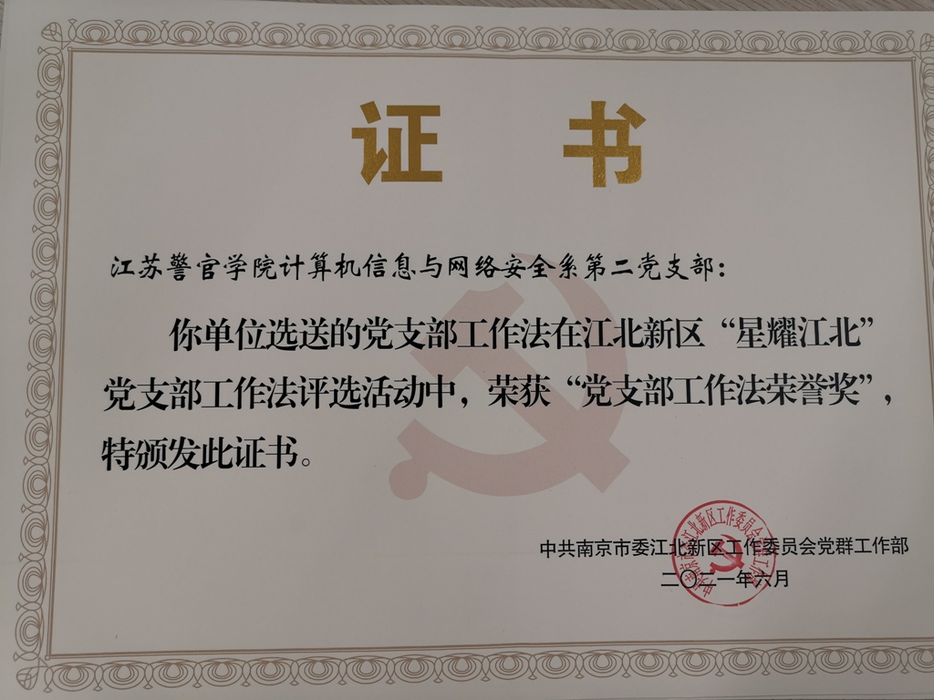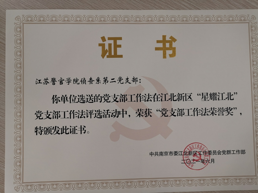 近日,南京市江北新区党工委公布了2021年度“星耀江北”党支部荣誉奖名单。学院计算机信息与网络安全系教师第二党支部“强化政治建警.锤炼破案尖兵——六以工作法”和侦查系教师第二党支部“双融入工作法打造明星教学团队”榜上有名,喜获殊荣。