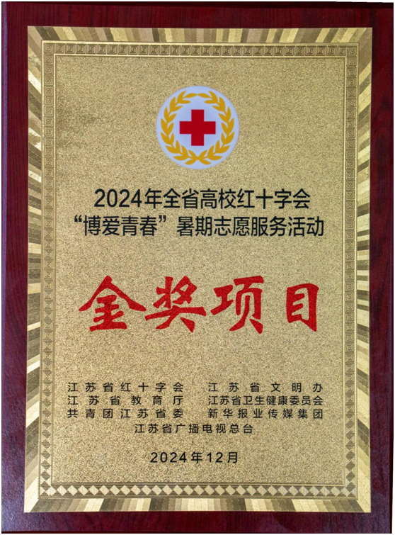 beat365选送的“警翼护苗送温暖,法润人心筑平安”志愿服务项目,在江苏省红十字会、省文明办、省教育厅、省卫健委、团省委、新华报业传媒集团、省广播电视总台联合举办的2024年全省高校红十字会“博爱青春”暑期志愿服务活动评比中脱颖而出,荣获“金奖项目”。