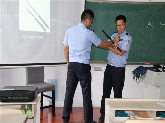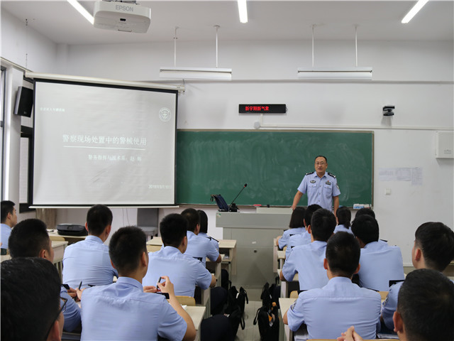 9月10日下午,专门邀请警务指挥与战术系赵辉老师为挂钩联系的15警战区队学生开设《警察现场处置中的警械使用》讲座,从警用装备种类、警械武器使用原则、使用方法和使用技巧等方面,为学生系统讲授警务技能知识以及装备现场使用,将警用装备管理使用与学生职业生涯规划有效衔接,在培养学生警务技能、提高实战水平的同时,为同学们今后更好地履行警务工作职责打好专业基础。今后还将围绕主题区别不同类型装备开展现场教学、实训实练等不同形式的系列活动。