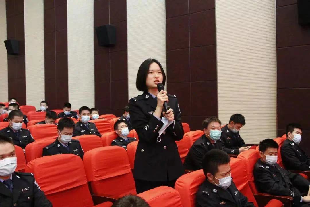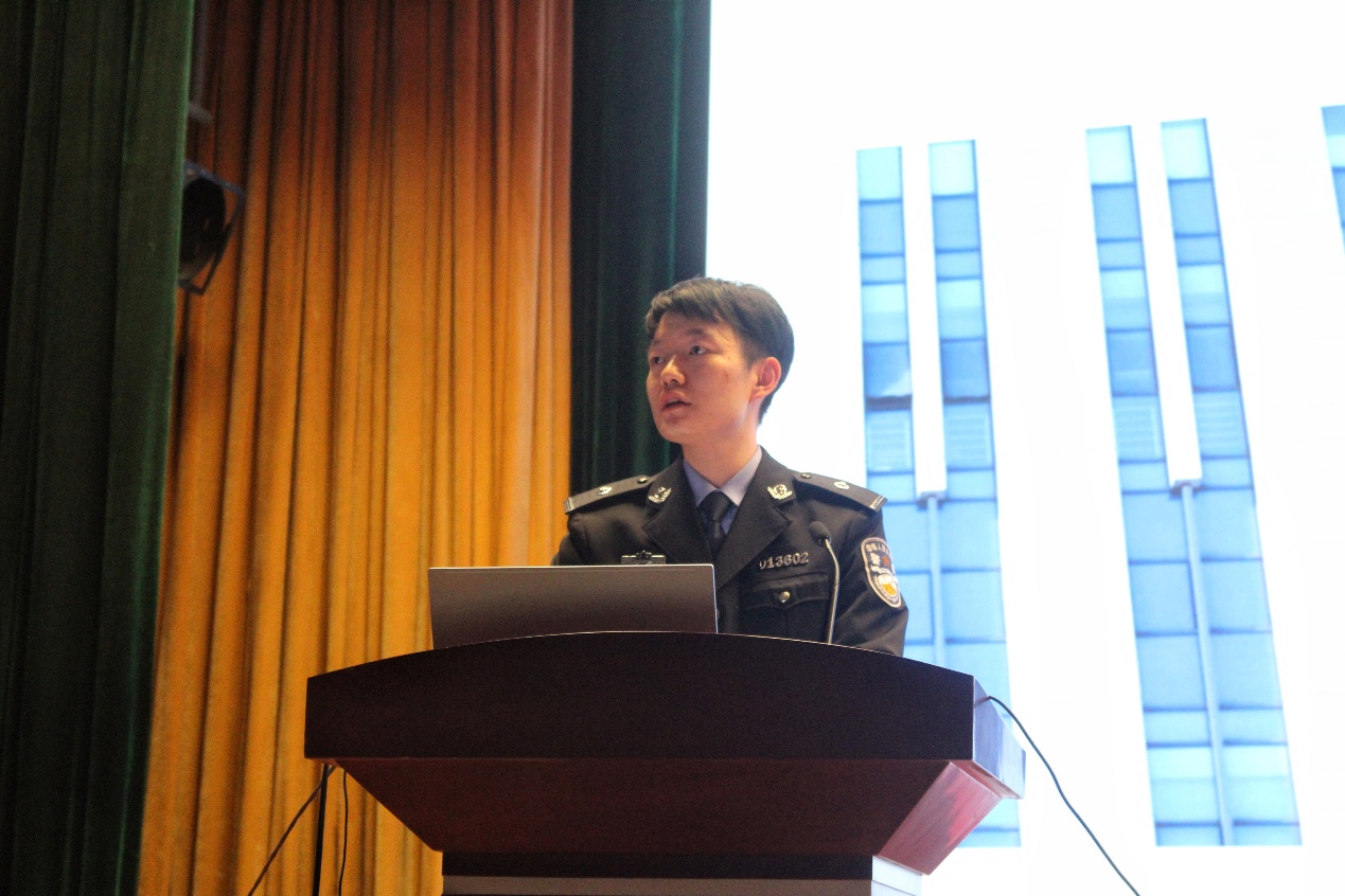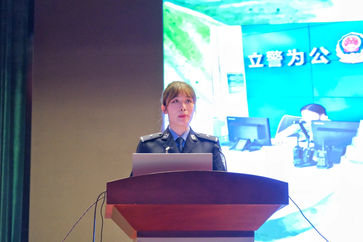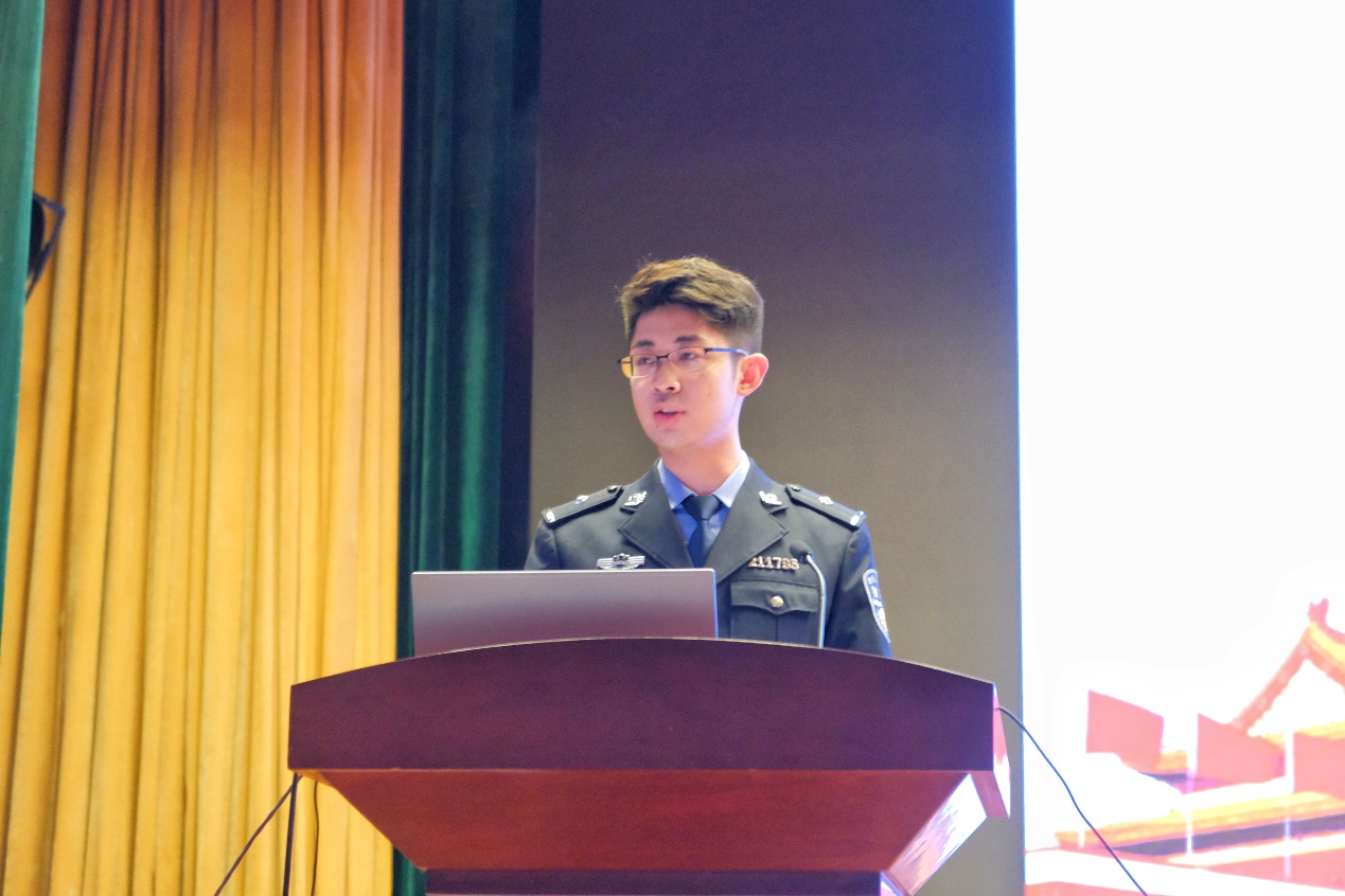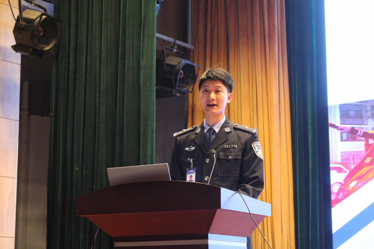 我曾经在玄武分局执法办案管理中心担任讲解员,当面对各级领导和同仁的调研考察时,总努力以最熟练的讲解保障活动的顺利进行。这么多年,公安工作的艰辛、困难、磨砺,给了我很深的感触。我非常庆幸在学校时期的勤学苦练,为走向岗位打下了扎实的基础。送给学弟学妹们一句话:愿吾辈青年,特别是在座的每一位预备警官,用自己的行动筑牢自己心中的警魂!