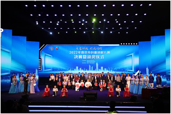 (“南京市科普使者”称号颁奖照片,左五为徐千惠)