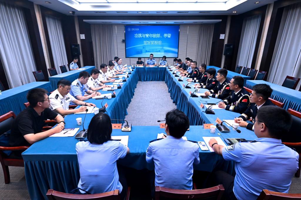 为深入学习贯彻党的二十大、二十届三中全会精神和习近平总书记重要讲话重要指示精神,认真贯彻落实全国、全省公安工作会议精神和公安部关于开展“人民公安从这里走来”主题活动的部署要求,进一步弘扬英模精神,铸牢忠诚警魂,激励全体师生更加奋发有为、担当尽责,以优异成绩向新中国成立75周年献礼,9月27日,全省公安系统功模先进事迹巡回报告专场宣讲在学院举办。宣讲结束后,学院组织功模与学院青年教师、学警代表座谈交流。省公安厅党委委员、学院党委书记夏存喜,学院党委副书记、院长黄进专门看望报告团成员,夏存喜参加座谈交流并讲话。学院党委副书记陈卫在宣讲活动上致辞并主持交流会,学院党委委员和省公安厅新闻宣传中心负责同志参加活动。
