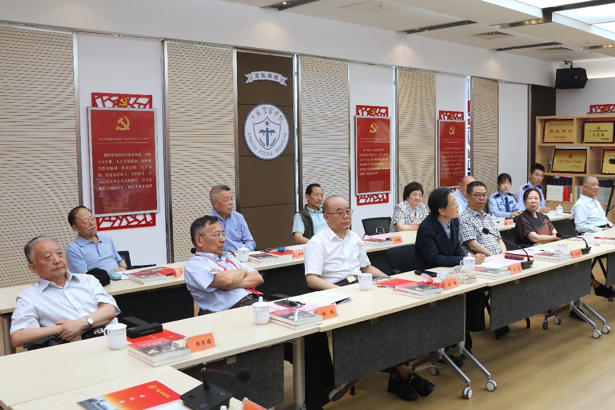 为深入学习贯彻习近平总书记关于公安工作、教育工作、江苏工作的重要讲话重要指示精神,贯彻落实全国公安工作会议精神和公安部、省公安厅关于推进公安工作现代化的部署要求,推进大思政教育教学,传承红色基因、弘扬校训精神,教育引导学院师生坚定初心使命、筑牢忠诚警魂,凝心聚力推动学院事业高质量发展, 6月6日下午,学院在浦口校区举行“银发丹心忆当年”退休老同志与青年师生主题座谈活动。学院邀请周家骧、赵远、张健、张霞、周亚红、范平等退休老领导老教授老同志和尤文杰、奚必芳等老校友参加座谈。省公安厅党委委员、学院党委书记夏存喜,学院党委副书记、院长黄进看望老同志,学院党委副书记陈卫、副院长冯红新等领导和学院青年老师、学生代表参加座谈活动。