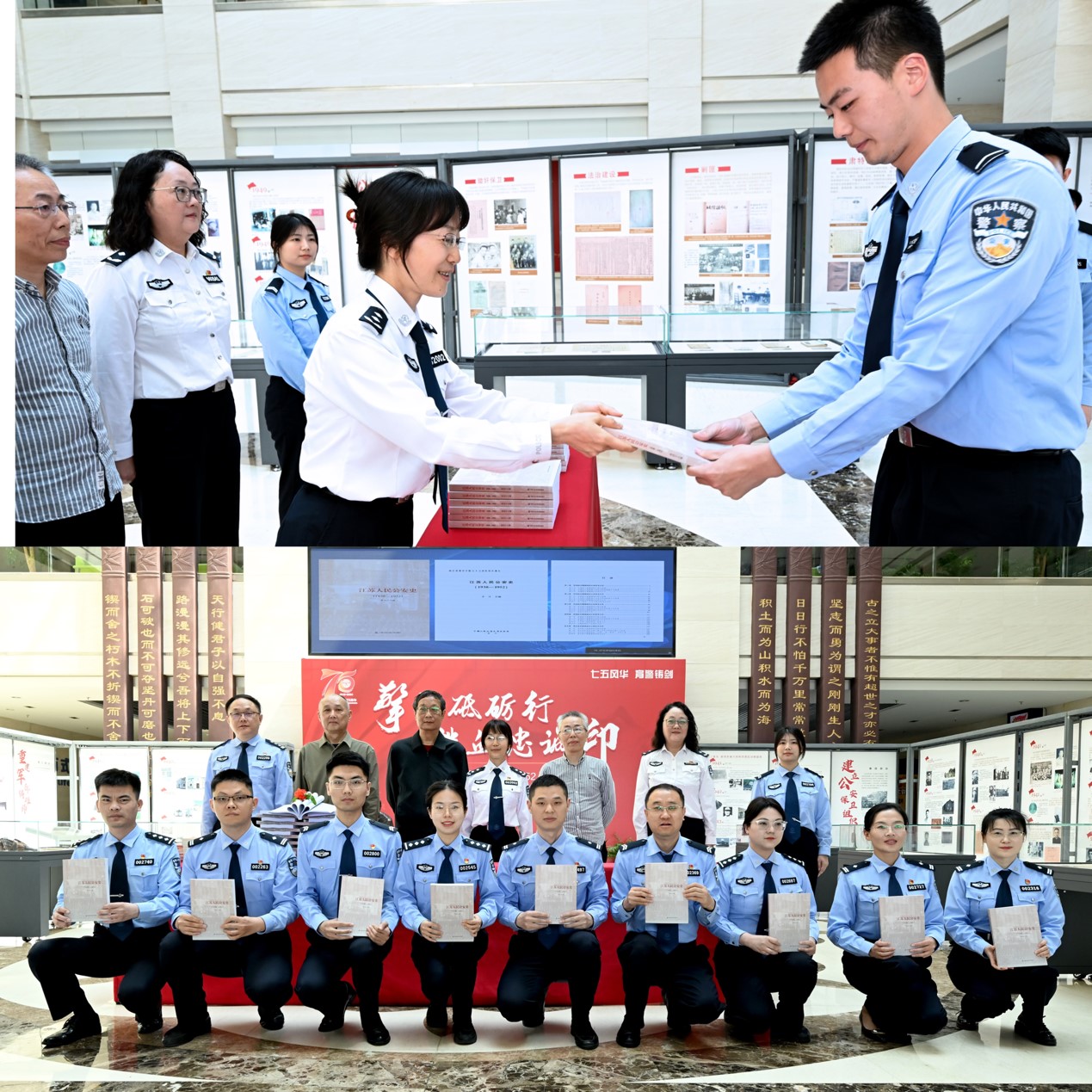 学院党委副书记、院长黄进作为《江苏人民公安史1938-1952一书主编代表创作团队向师生代表赠送了书籍并和师生代表一起观看了主题展。黄进院长高度肯定博物馆近10年在教育、研究、宣传方面做出的成绩,充分认可博物馆连续4年在国际博物馆日所举办的主题展极大地丰富了校园文化生活与公安思政教育。黄进院长指出,此次活动是推动实现公安历史深厚底蕴与博物馆教育和研究使命相融合而进行的一次成功的探索和尝试,希望以《江苏人民公安史1938-1952》为新契机,持续深耕人民公安史研究领域,深入挖掘公安文化丰富内涵,更好服务学院忠诚警魂教育,更好服务中国式现代化江苏新实践和公安工作现代化建设。