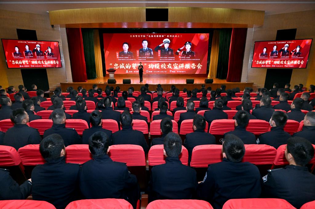 张亮亮是两度登上过《人民日报》的“网红警察”,被网友称为“枕头警察”“拳头警察”。从警十一年来,他始终牢记母校“无私奉献”的校训,扎根基层一线,守护群众安宁。他结合个人成长经历讲述了“枕头警察”“拳头警察”昵称的由来,从心中有群众、脚下有力量,肩上有责任、心中有担当,创新无止境、勤学且善思等3个方面分享从警感悟,勉励学警牢固树立从警为民的理念,主动培养勤学善思的能力,忠诚履行新时代公安工作职责使命。